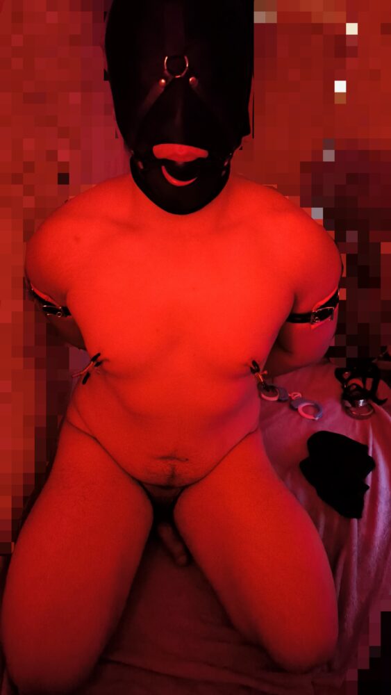 Bị phạt 40 phút luôn rồi, tranh thủ làm một bức ảnh trước khi xong, trùm đầu spandex ball gag harness với còng tay liên tục 40 phút cũng ớn, ông người yêu biết cách phạt ghê😳